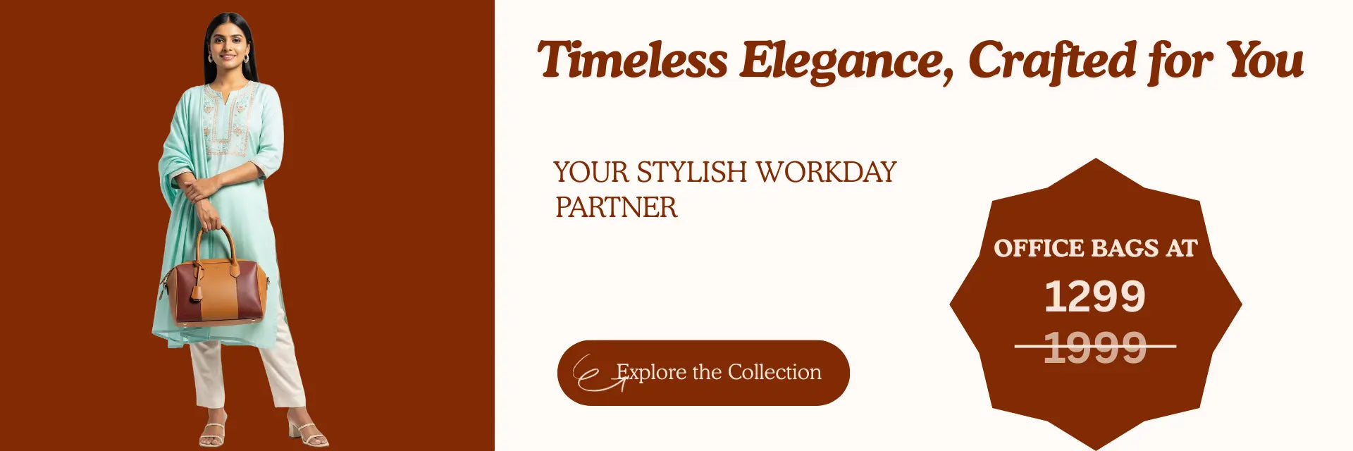 We are a proudly Indian fashion brand dedicated to bringing you the most stylish, functional, and high-quality handbags, clutches, totes, and accessories — curated specially for today’s modern woman.